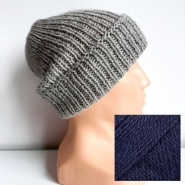 Czapka wywijana zrobiona ręcznie na drutach KIARA 100% Alpaka 6360 nocne niebo