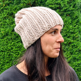 Ręcznie robiona czapka damska ASHER 100% Wełna owcza 06 Jasny Beż