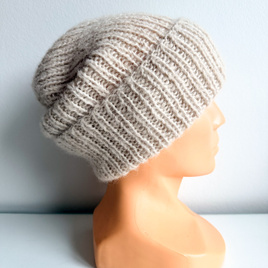 Ręcznie robiona czapka damska MORGANA Merynos, Alpaka z Jedwabiem 59/40 Marcepan