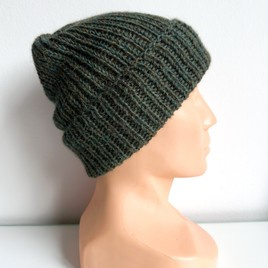 Czapka wywijana zrobiona ręcznie na drutach KIARA 100% Alpaka 7815 Leśny mix