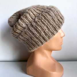 Ręcznie robiona czapka damska WATA CUKROWA Alpaka z Merynosem 15 Beżowy