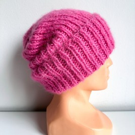 Ręcznie robiona czapka damska WATA CUKROWA Alpaka z Merynosem 22 Słodka Orchidea