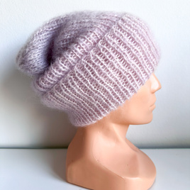 ( Anzahl der Produkte: 4 )Ręcznie robiona, wywijana Czapka moherowa z jedwabiem Jasny różowy