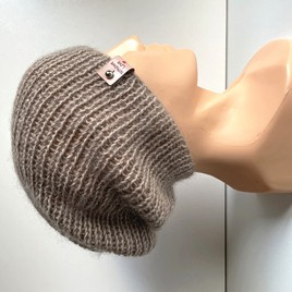 Ręcznie robiona Czapka MARI 100% Alpaka plus nitka moher z jedwabiem 2020 beż
